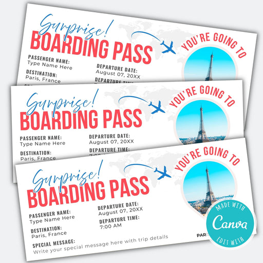 View full detailsDIY Christmas Travel Boarding Pass Gift Voucher Template | Surprise Vacation Ticket